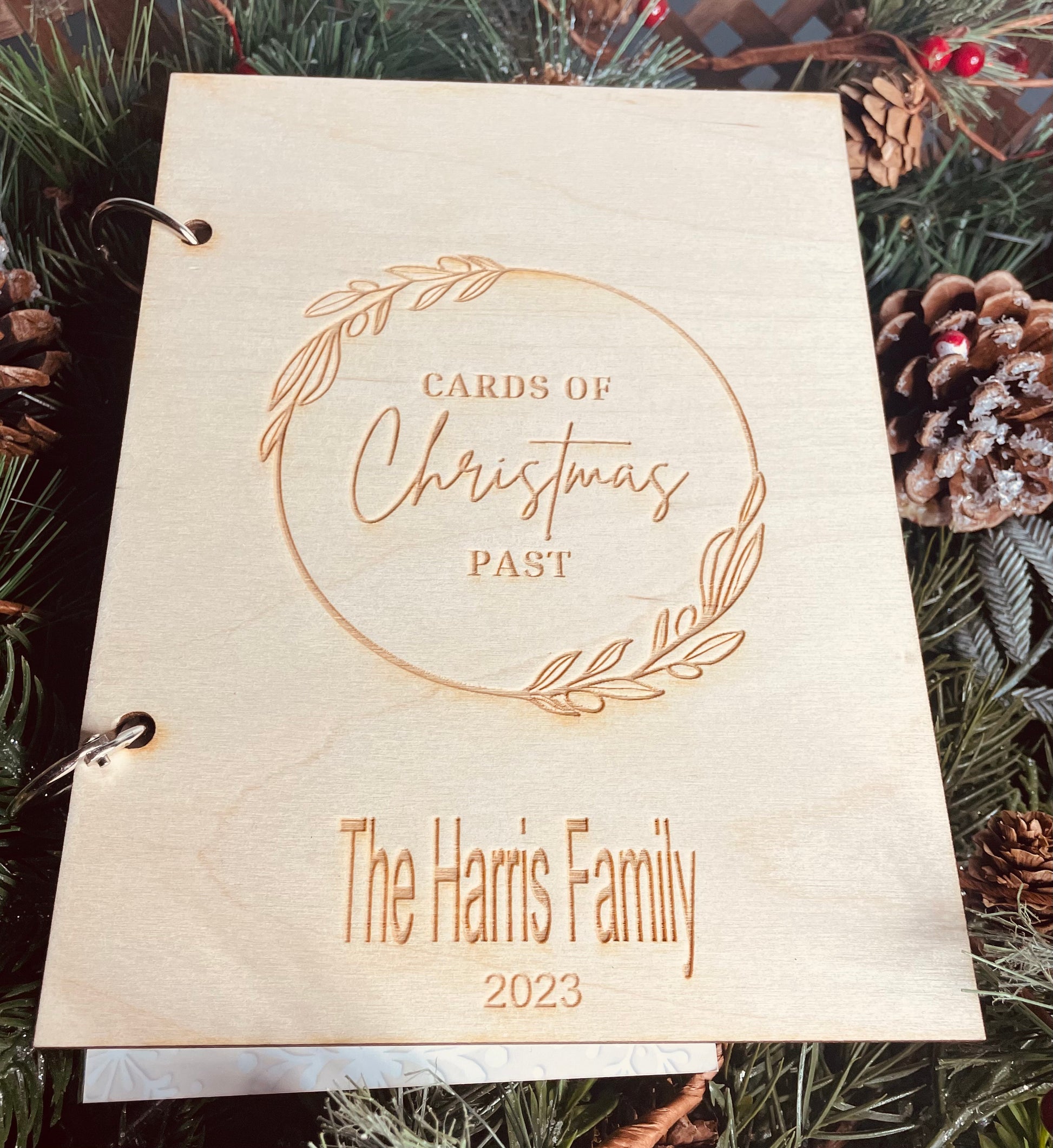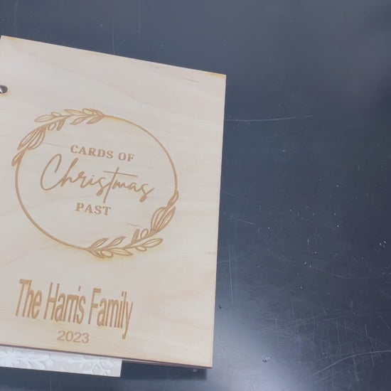 The is a beautiful way to keep all your Christmas cards in a safe and organized place! This wooden Christmas card holder can be used year after year or get one for each year and will hold your memories close to you! This personalized wood Christmas Card Holder comes with a hole punch guide card that way you can line up all your beautiful Christmas cards for years to come. Made from 1/4" thick Baltic birch wood, this custom Christmas Card Holder keepsake is laser engraved with 3 design options to choose from.