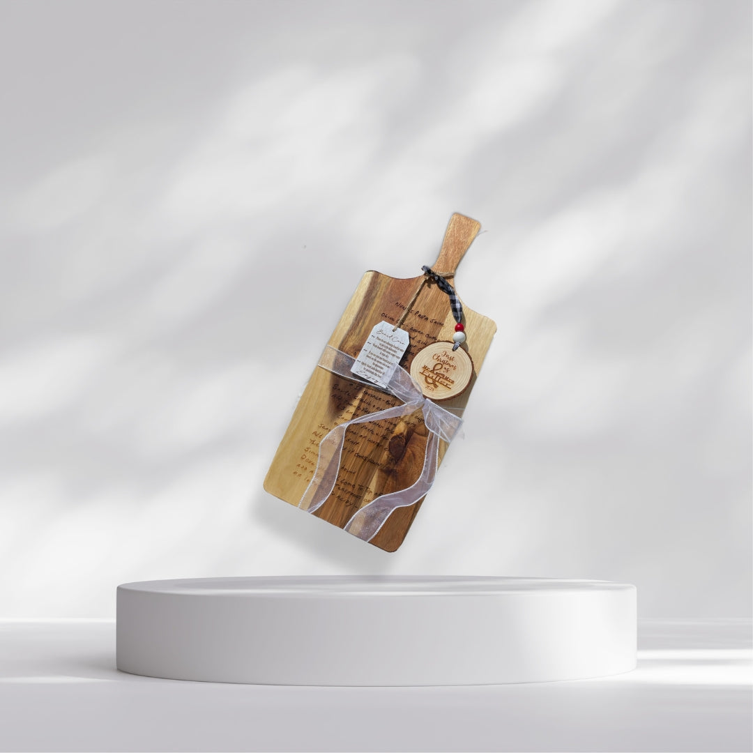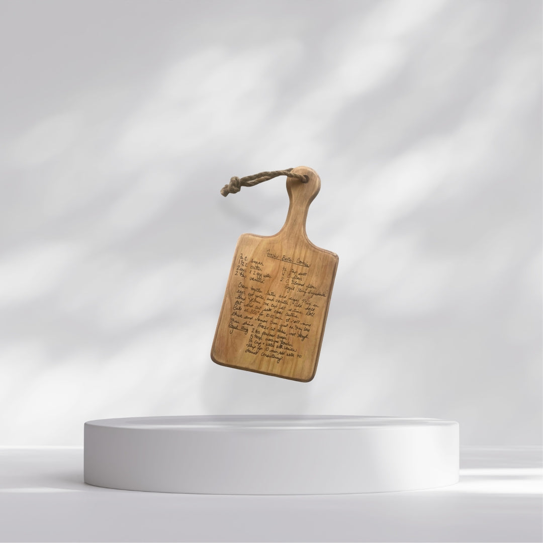 Surprise your family with a unique and personalized gift that will last a lifetime! Our Family Recipe Board is custom-engraved with a handwritten family recipe of your choosing. Celebrate your family's legacy and start a new tradition with this one-of-a-kind kitchen essential. Yum-my!